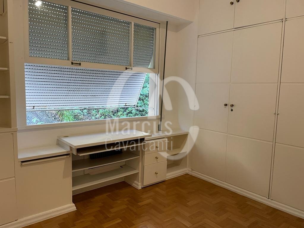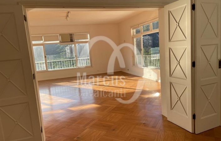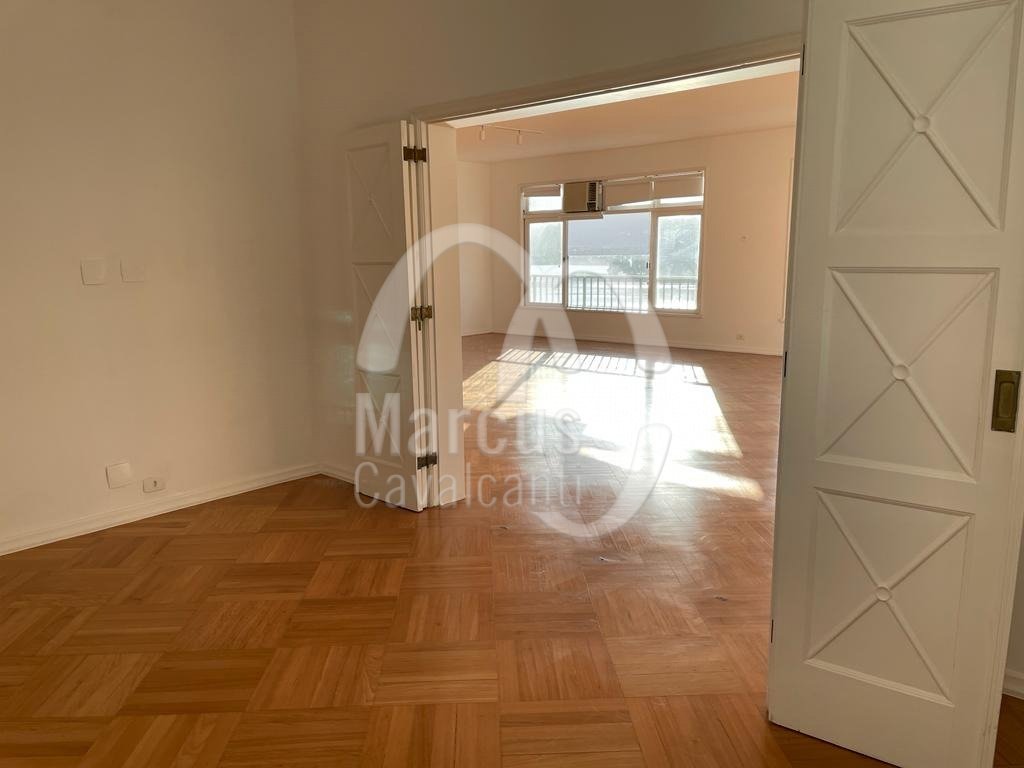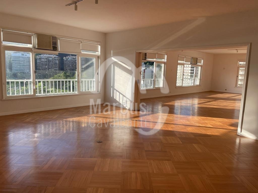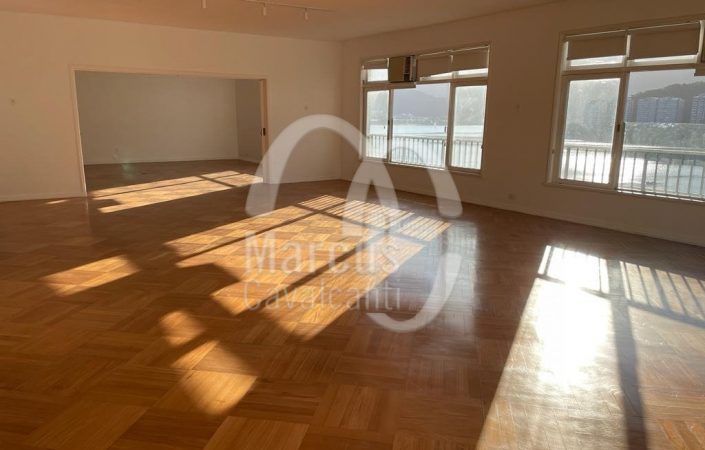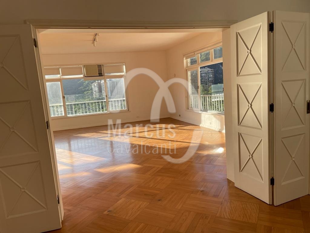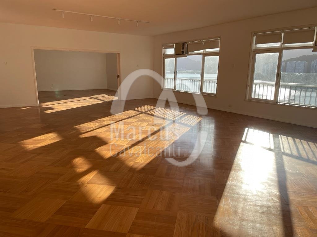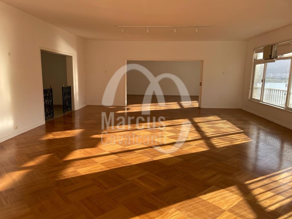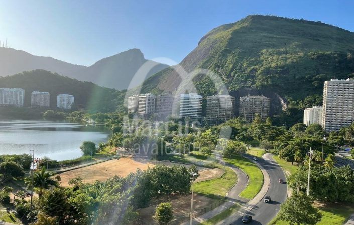 Apartamento com linda vista Lagoa, Cristo, indevassável com peças amplas e planta circular. Andar alto, muita entrada de luz natural, com hall, original cinco quartos, um aberto para o living, como home theater, lavabo, uma suite, copa cozinha e duas dependências. Duas vagas de garagem, sendo uma na escritura e outra na convenção. Prédio em excelente estado com portaria 24 hs.