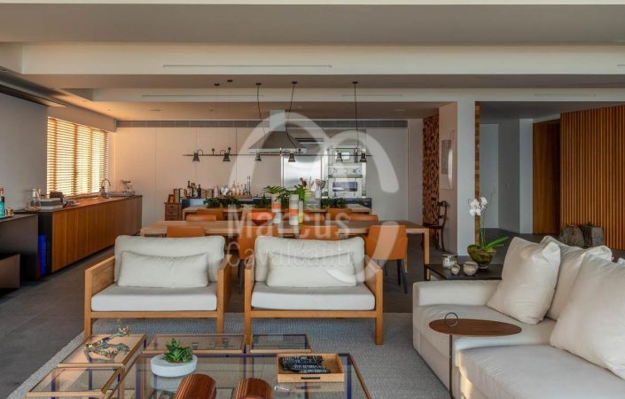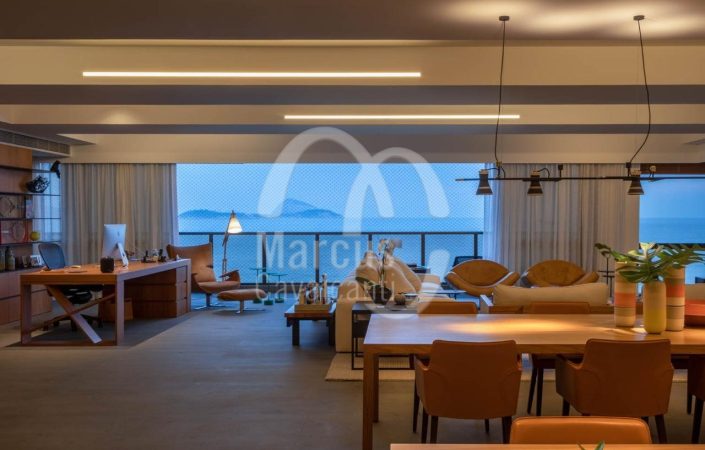Excelente apartamento com maravilhosa vista para a orla em prédio icônico. Segurança total. Amplo living, escritório, lavabo, 3 amplas suítes, máster com 110m². Moderno, excelente marcenaria, bom gosto em detalhes. Ampla copa cozinha, 2 dependências. 4 vagas de garagem.