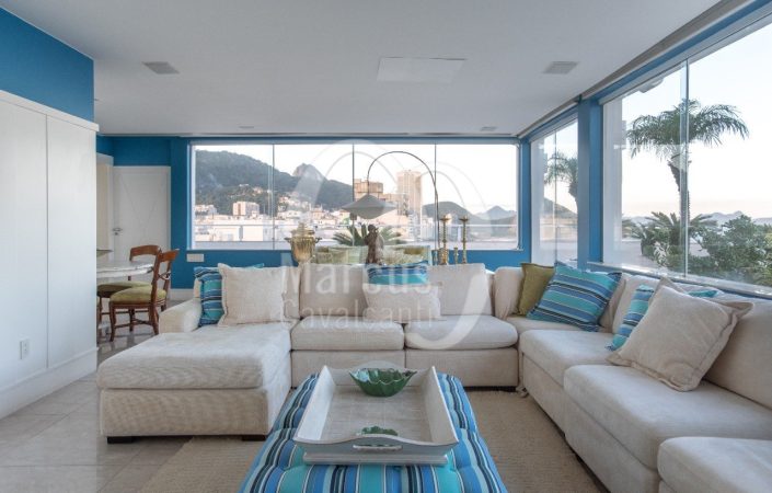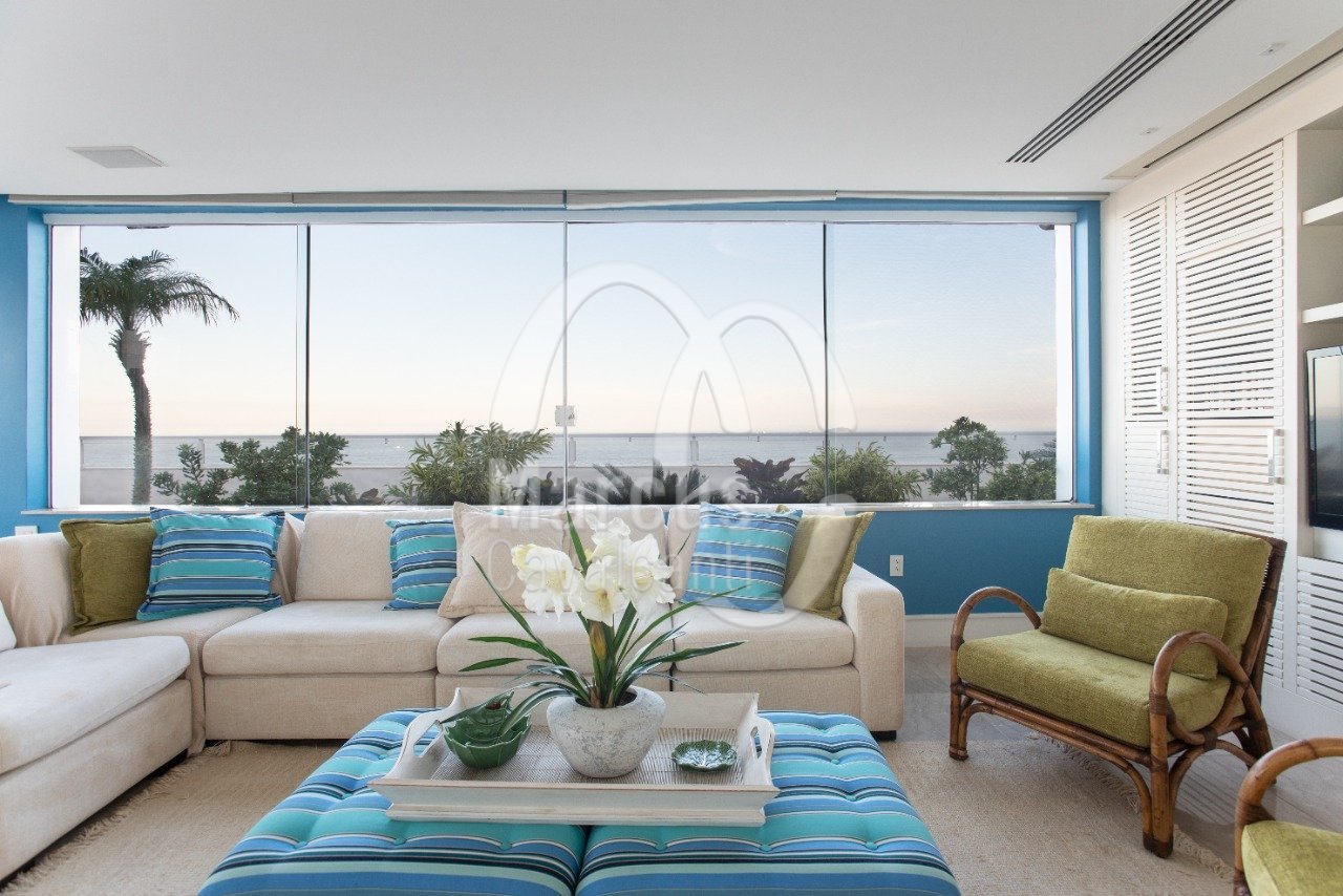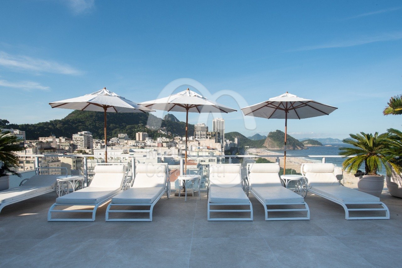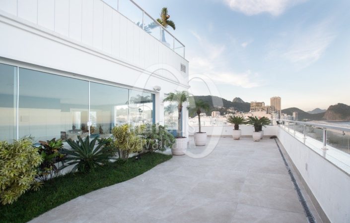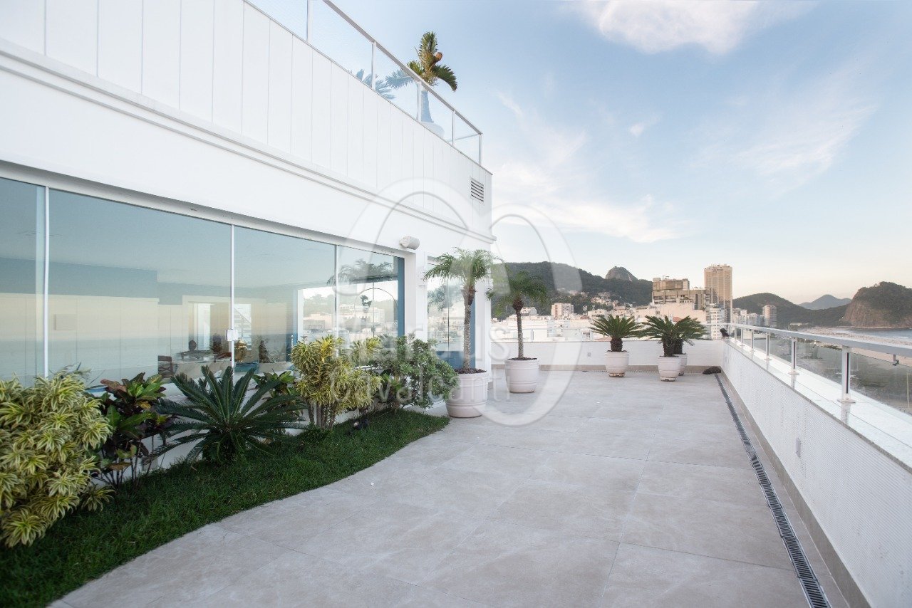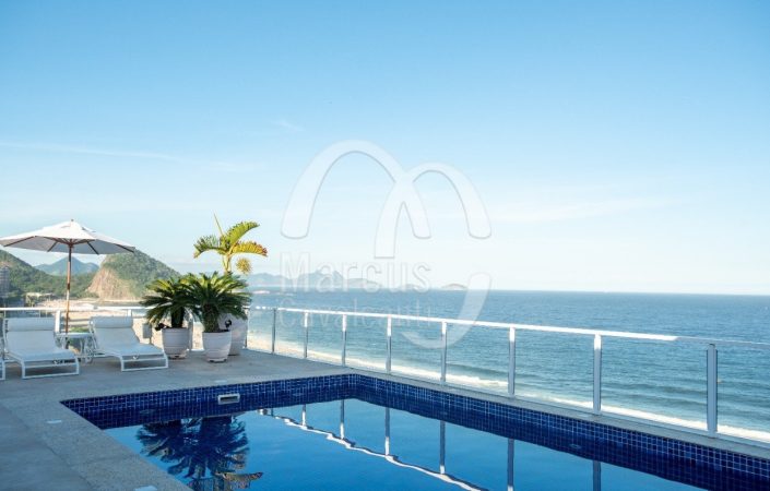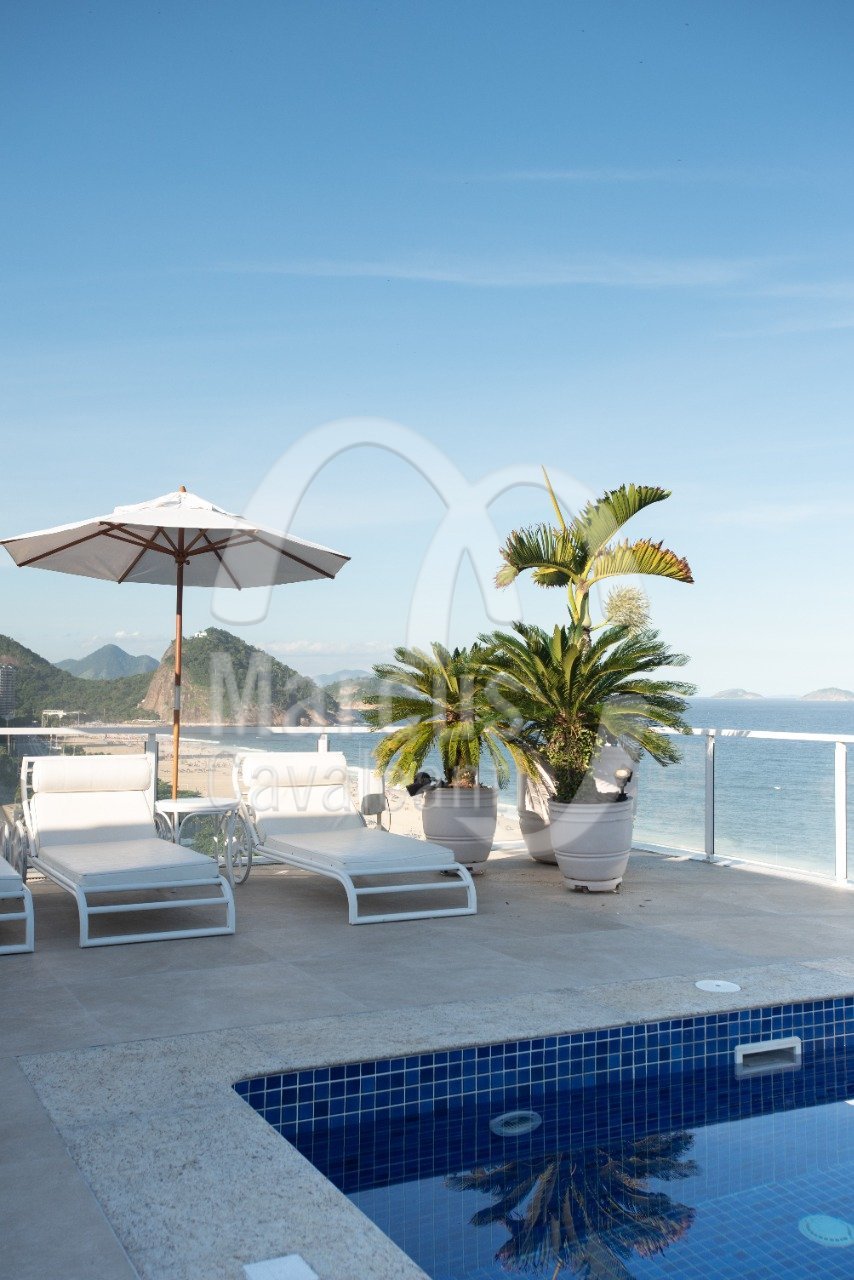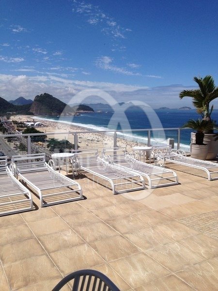 Magnífica cobertura com vista deslumbrante para toda orla de Copacabana em prédio icônico. Ampla, muito iluminada. Confortável living, sala de jantar, escritório, lavabo. 5 suítes sendo 3 no primeiro piso, 2 no segundo, máster com 70m². Terraço no terceiro piso, home theatre. Sala de almoço, copa cozinha, 2 dependências. 3 vagas de garagem.