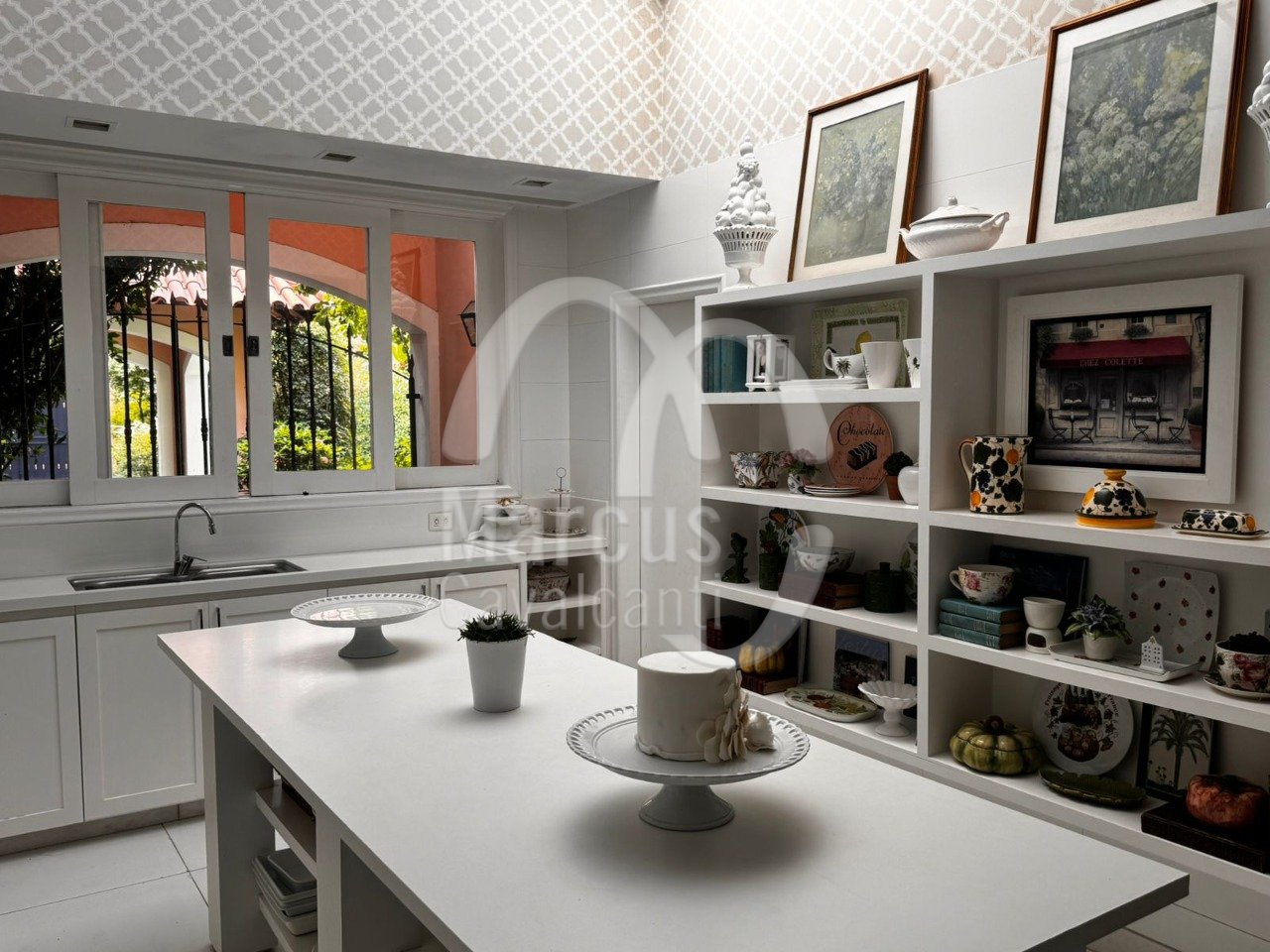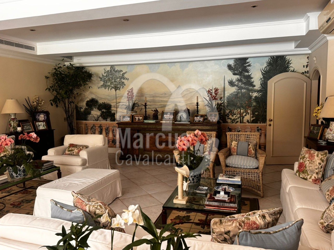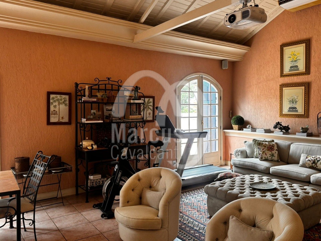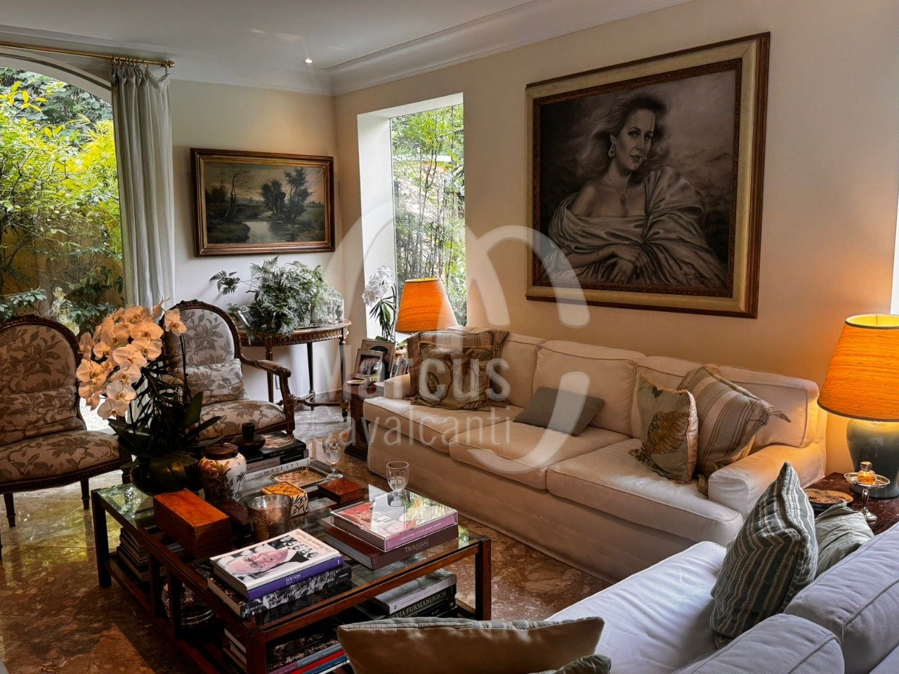 Grande salão, sala de jantar, varanda coberta como sala de estar. Muito agradável com requinte e bom gosto.