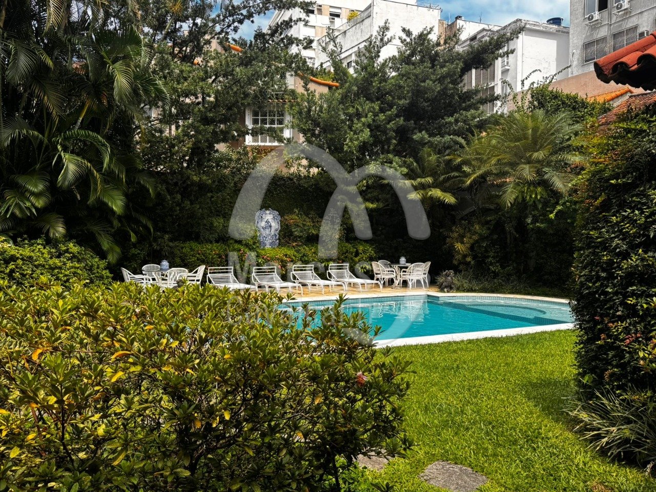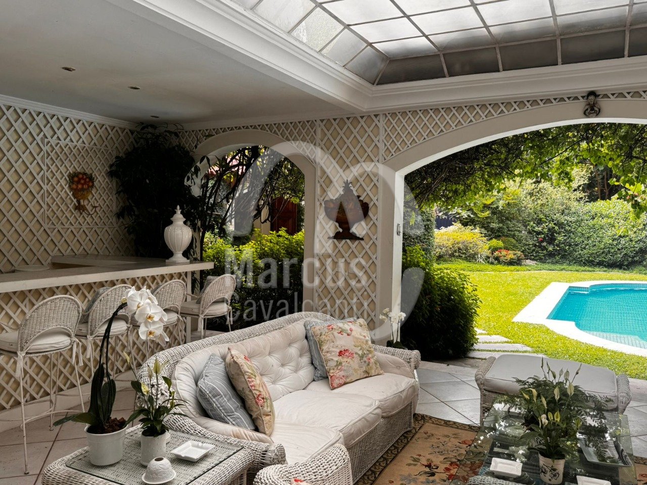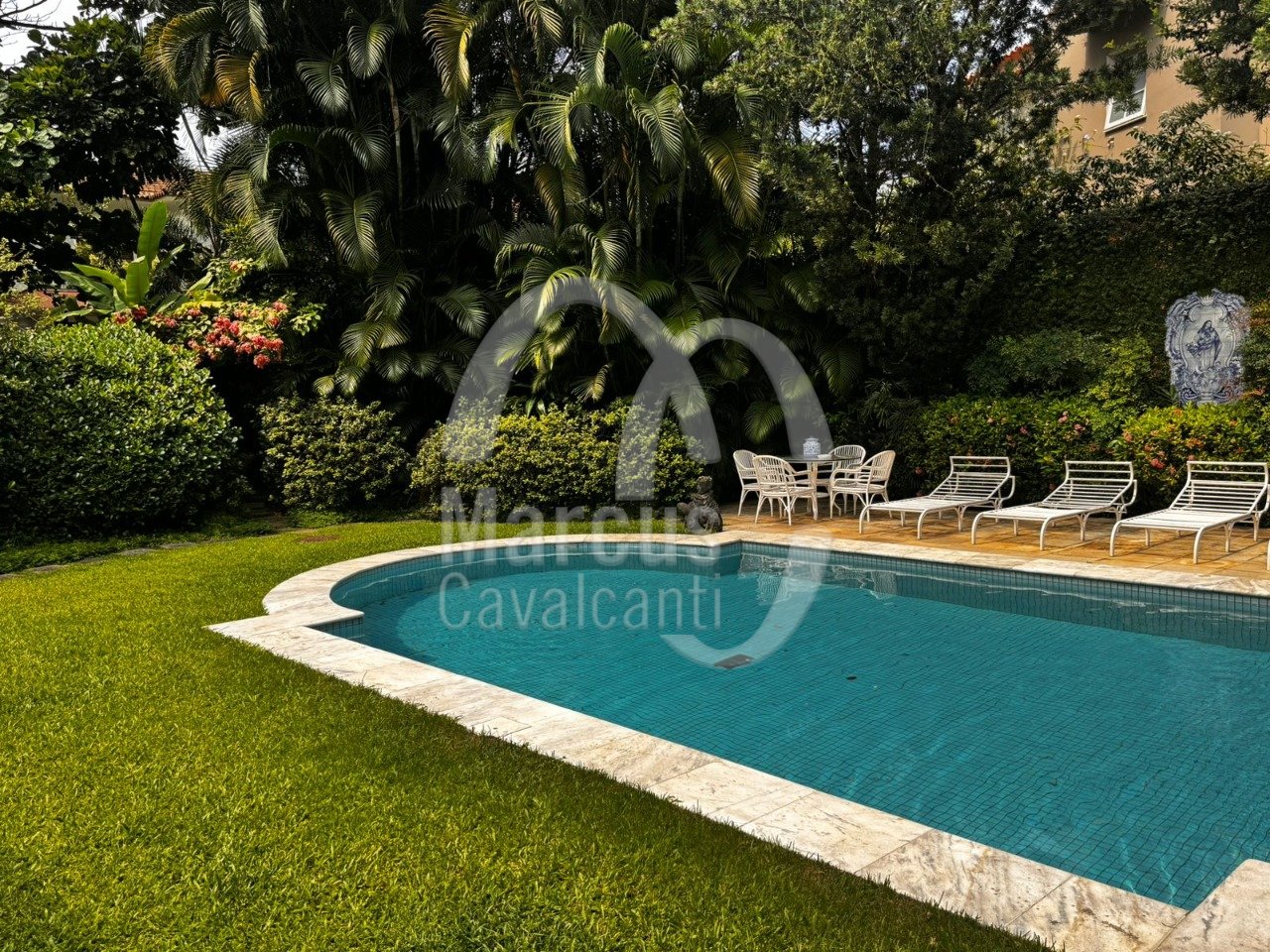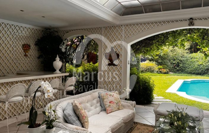 Residência em terreno de 1100m² com 1000m³ construídos. Grande piscina, edícula com grande salão, cozinha completa, sala de cinema, suíte, salão. Passagem direta para a área íntima da casa principal com 5 quartos, banheiros, 2 suítes. Principal muito ampla com área de estar. quarto de banho.