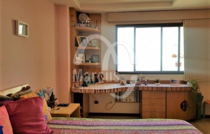 LAJE NO TERCEIRO PISO. AMPLO, EXCELENTE PLANTA. PRIMEIRO PISO C/ 4 GENEROSAS SUITES SENDO AS 2 FRONTAIS C/ ACESSO Á VARANDA. A SUITE PRINCIPAL COM GRANDE CLOSET FEITO ONDE ORIGINALMENTE ERA O ACESSO AO ELEVADOR (QUE PÁRA NOS 2 PISOS) DESTE PISO, ELIMINANDO ESSA ENTRADA, POREM PODE VOLTAR APENAS RETIRANDO O CLOSET. SEGUNDO PISO COM PARTE SOCIAL LIGADA À VARANDA, E PARTE DE SERVIÇO MUITO CLARA E AREJADA. O APTO TEM DIREITO EM ESCRITURA À UMA ÁREA DE LAJE CERCA DE 80 MTS ONDE HOJE TEM APENAS TELHADO.. PROPRIETÁRIOS OPTARAM POR NÃO FAZER ACESSO INTERNO À ESTE TERCEIRO PISO, MAS EXISTE UM PROJETO DE ESCADA NO LIVING. O ACESSO ATUAL È APENAS PELA ESCADA DE SERVIÇO DO PREDIO. BEM CUIDADO, POREM ANTIGO NECESSITANDO DE MODERNIZAÇÃO.